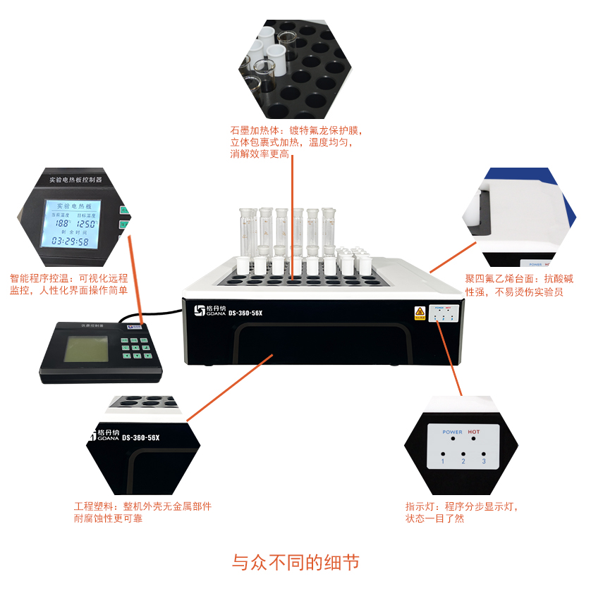 3.多孔設(shè)計,批量處理樣品,快速消解,節(jié)省時間。標配有:36、39、56、60等不同型號,且支持定制。